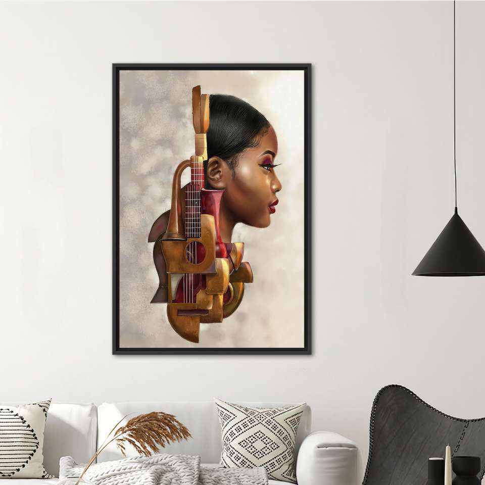 Printed Canvas: Abstract Musician Woman for Elegant Home Decor,Black Framed