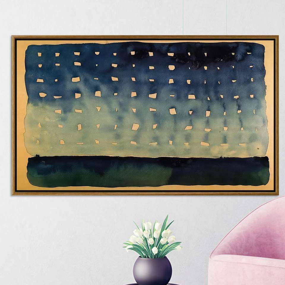 Printed Canvas: Abstract Night Sky with Light Windows,GOLD FRAMED CANVAS