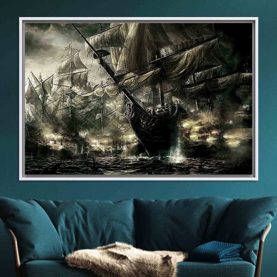 Printed Canvas: Abstract Pirate Battle - Elegant Office Wall Decor,WHITE FRAMED CANVAS