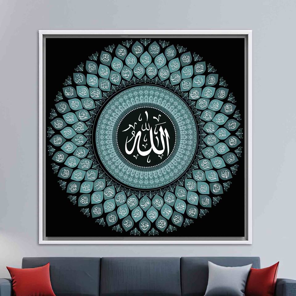 Printed Canvas: Allah Asma-ul Husna Glass Art - Elegant Muslim Home Decor,WHITE FRAMED CANVAS