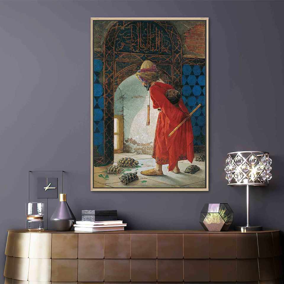Printed Canvas Art: Osman Hamdi's 'The Tortoise Trainer' Reproduction,Gold Framed