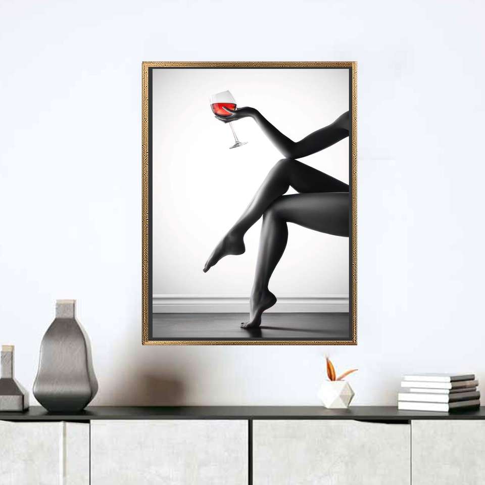 Printed Canvas Art: Sexy Woman Erotic Bedroom Decor,Gold Framed