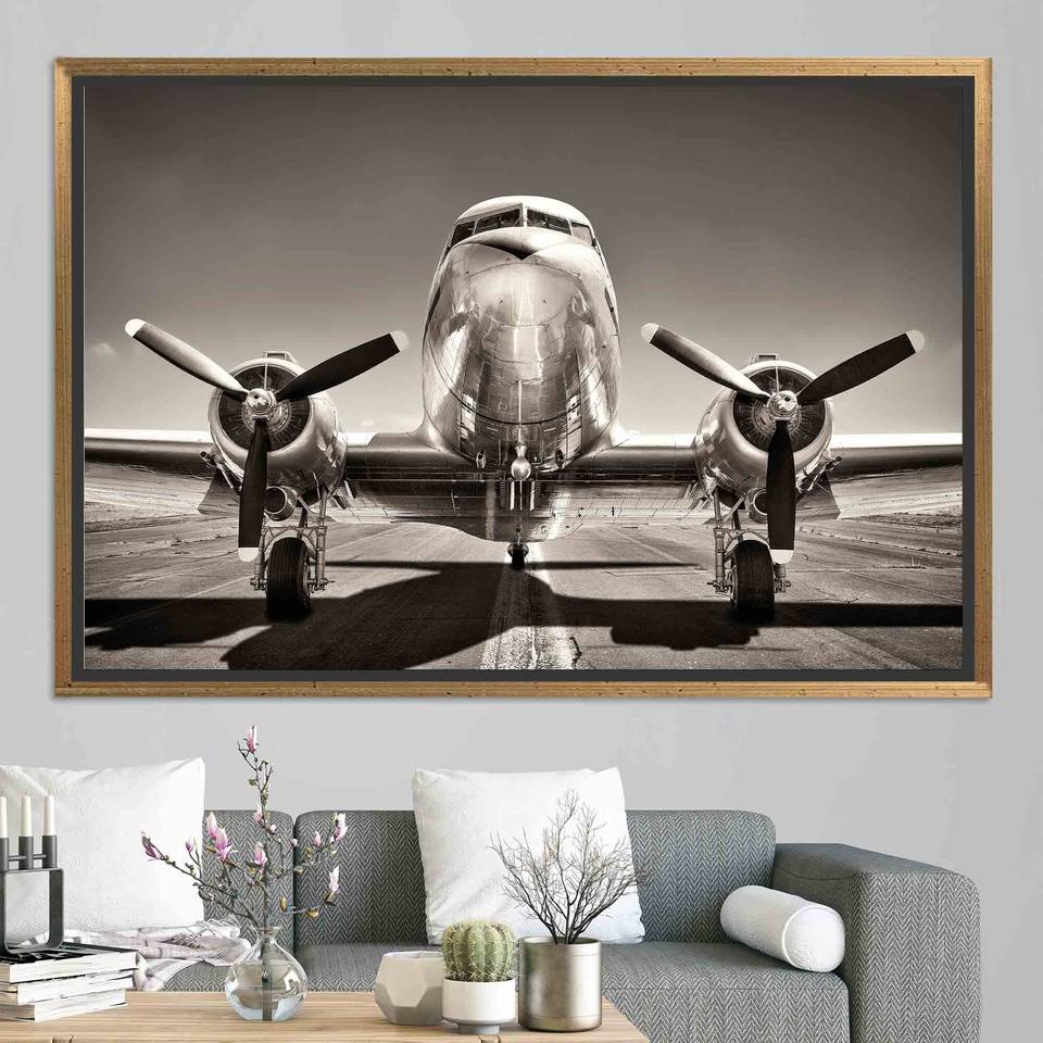 Printed Canvas Artwork: Abstract Aviation Decor for Modern Spaces,GOLD FRAMED CANVAS