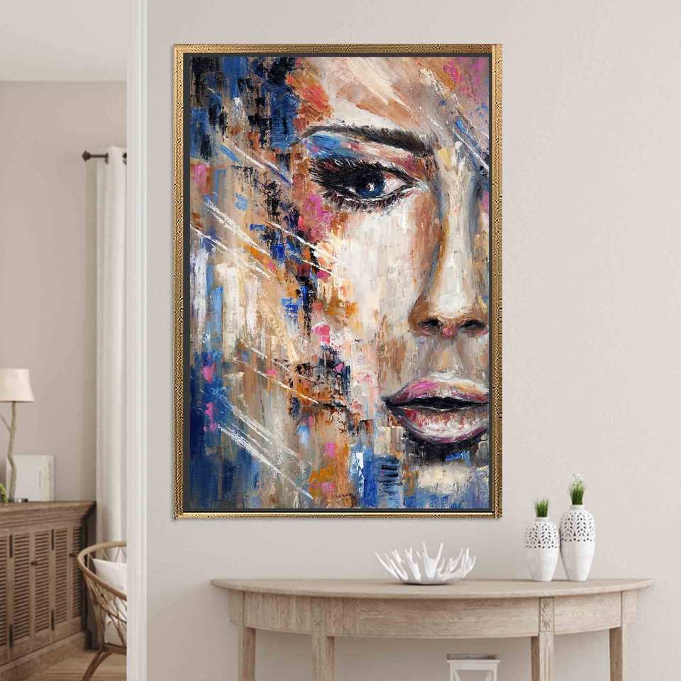 Printed Canvas Artwork: Abstract Woman Portrait Wall Decor,GOLD FRAMED CANVAS