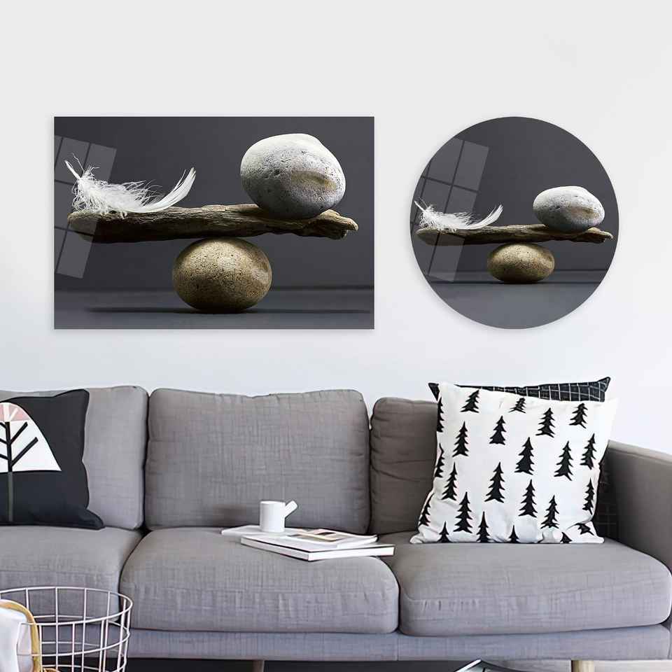 Printed Canvas Artwork: Balance Stone and Feather Tempered Glass Design,TEMPERED GLASS ART
