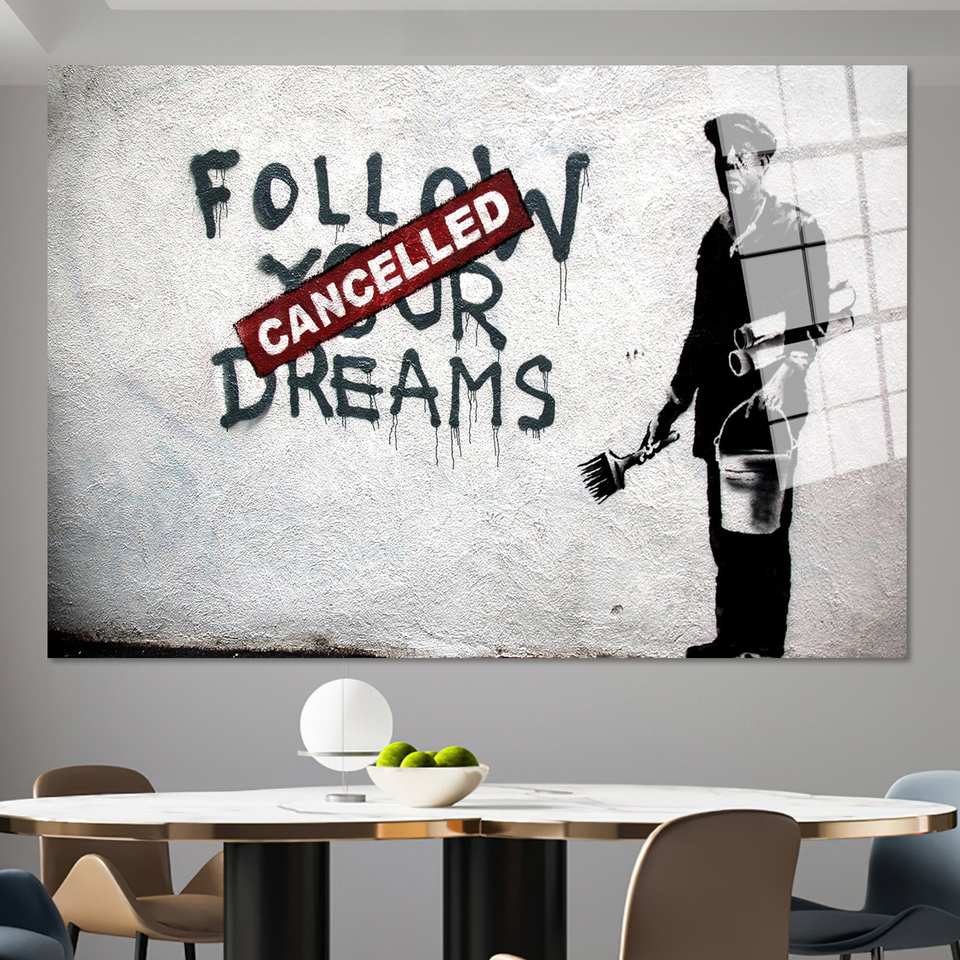 Printed Canvas Artwork: Banksy Graffiti 'Cancelled Dreams' Wall Hanging,TEMPERED GLASS ART