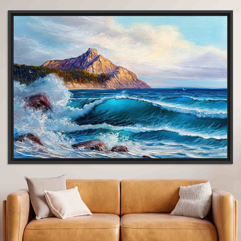 Printed Canvas Artwork: Coastal Mountain View Wall Art,BLACK FRAMED CANVAS