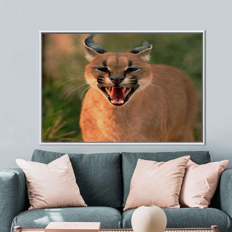 Printed Canvas Artwork: Elegant Caracal Wall Hanging for Wildlife Decor,1P:White Framed