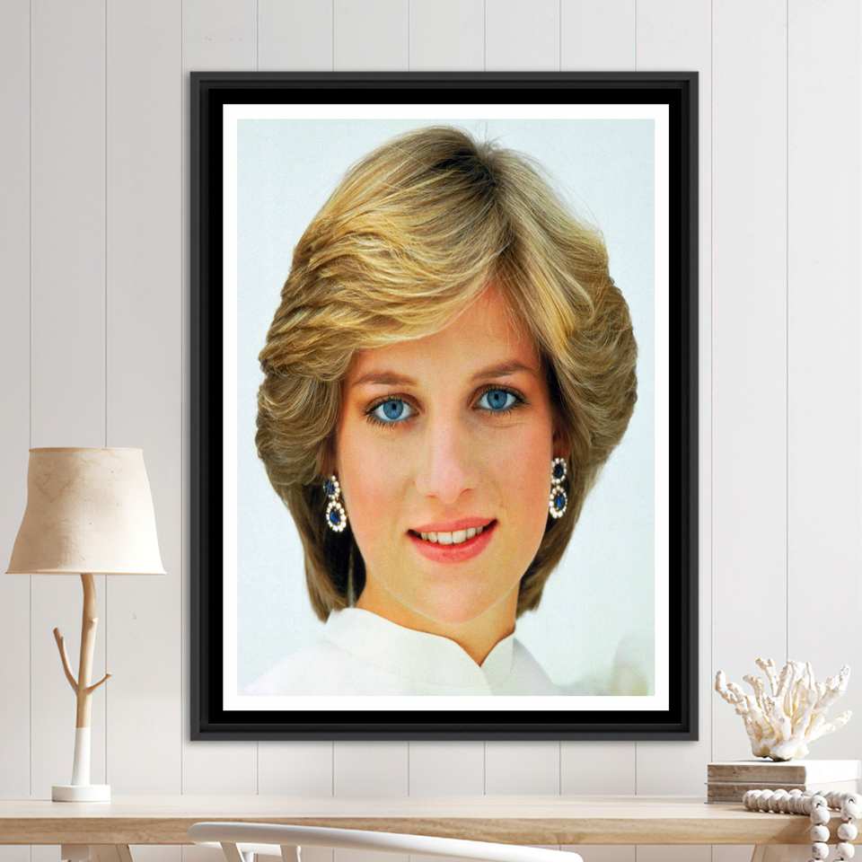 Printed Canvas Artwork: Elegant Princess Diana Portrait Wall Decor,Black Framed