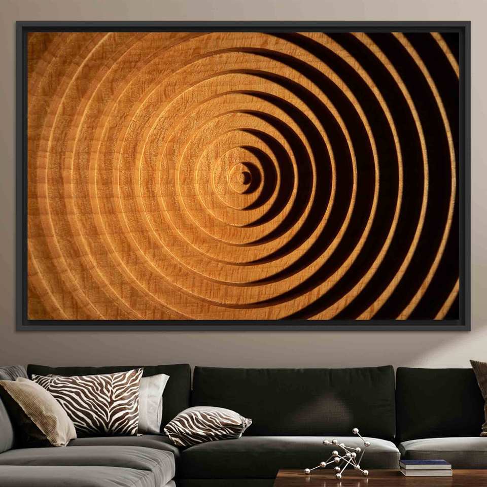 Printed Canvas Artwork: Modern Circular Wood Plate Wall Decor,BLACK FRAMED CANVAS