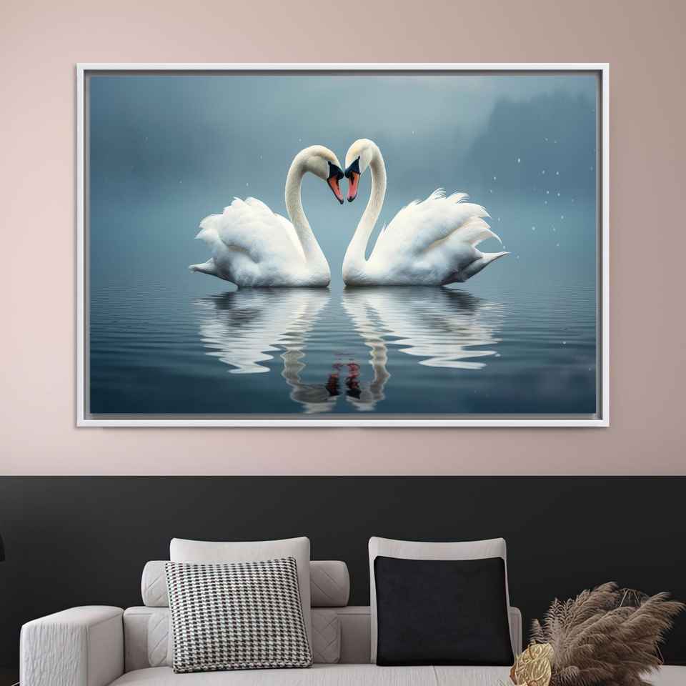 Printed Canvas Artwork: Romantic Birds in Love,WHITE FRAMED CANVAS