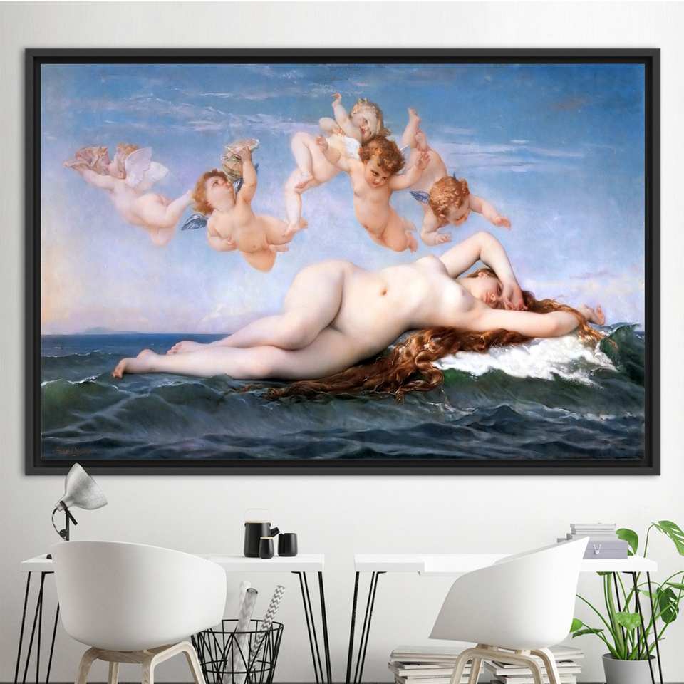 Printed Canvas Artwork: The Birth of Venus, Sea And Angels Wall Decor,1P:Black Framed