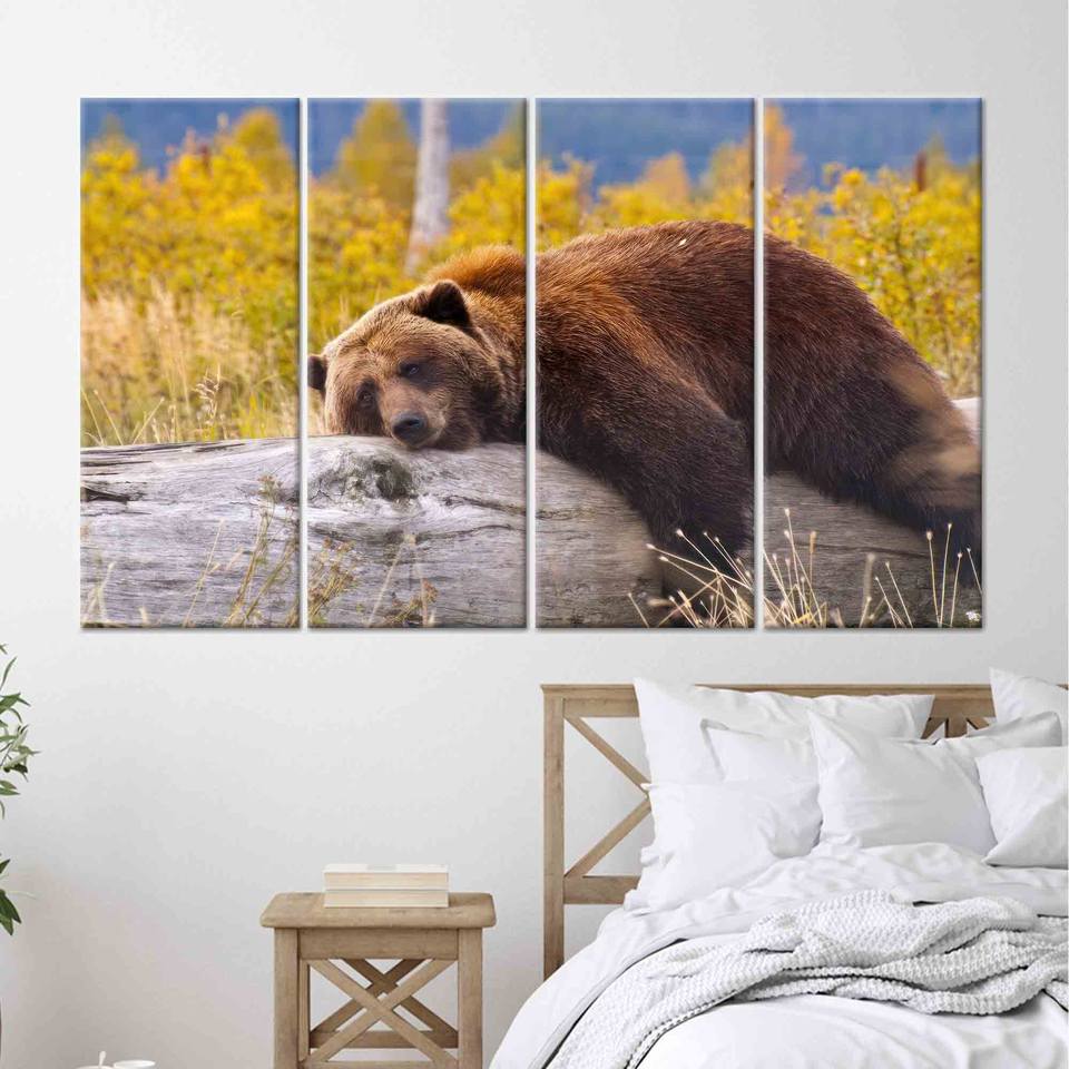 Printed Canvas: Brown Bear Resting on a Log Wall Art,4P: Gallery Wrapped