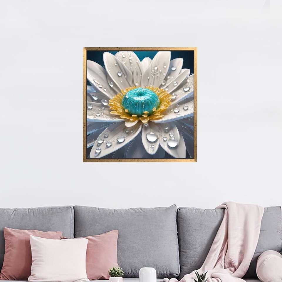 Printed Canvas: Elegant Botanical Art Daisy Bloom, Housewarming Gift,Gold Framed