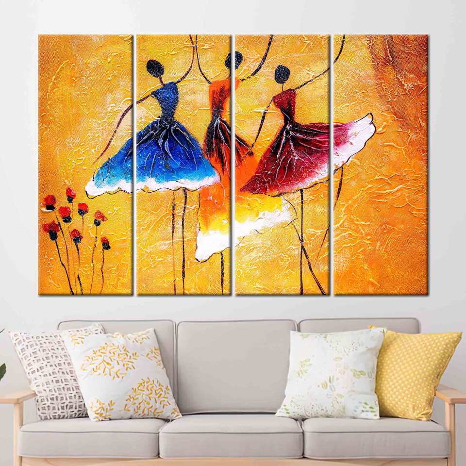 Printed Canvas: Elegant Modern Ballerina Wall Art, 4-Panel Dance Decor,4P-Gallery Wrapped