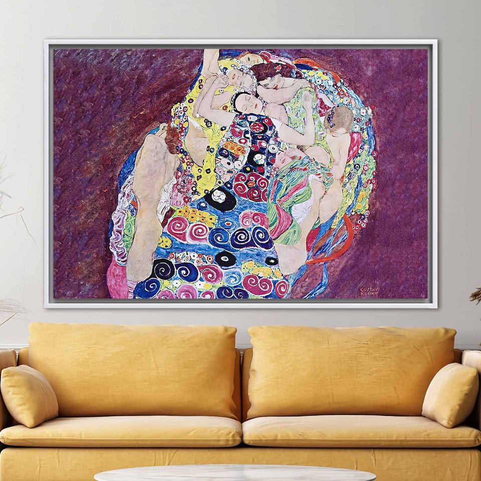 Printed Canvas: Elegant Virgin Art, Klimt Artwork Reproduction Poster,1P:White Framed