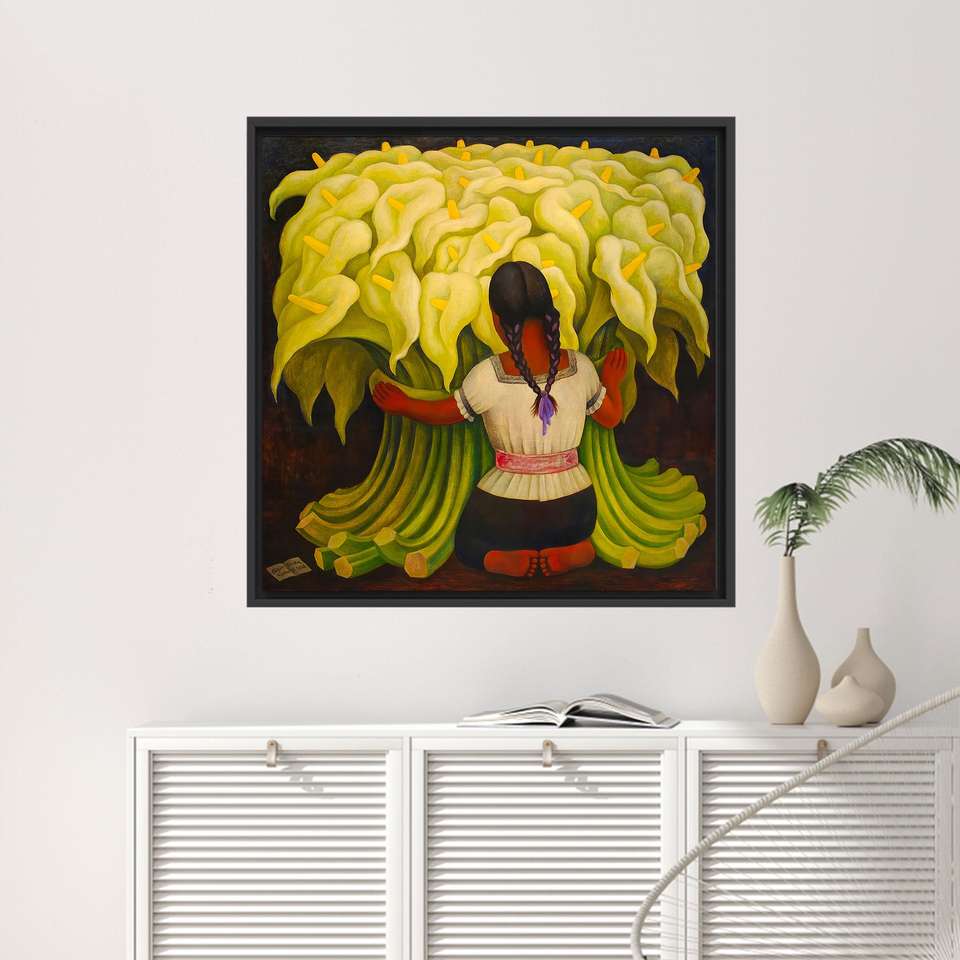 Printed Canvas: Mexican Girl with Lilies Frida Kahlo Art,Black Framed