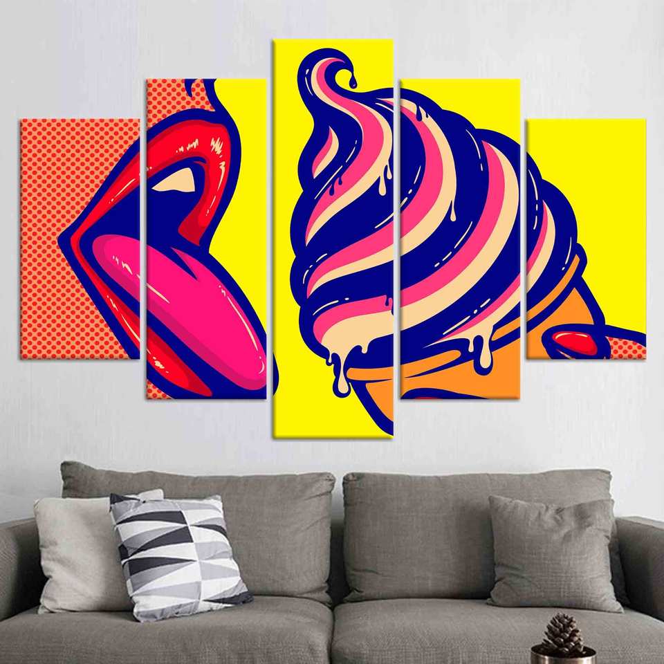 Printed Canvas: Pop Art Woman Licking Ice Cream, Stained Glass Style,SET OF 5 MIX CANVAS