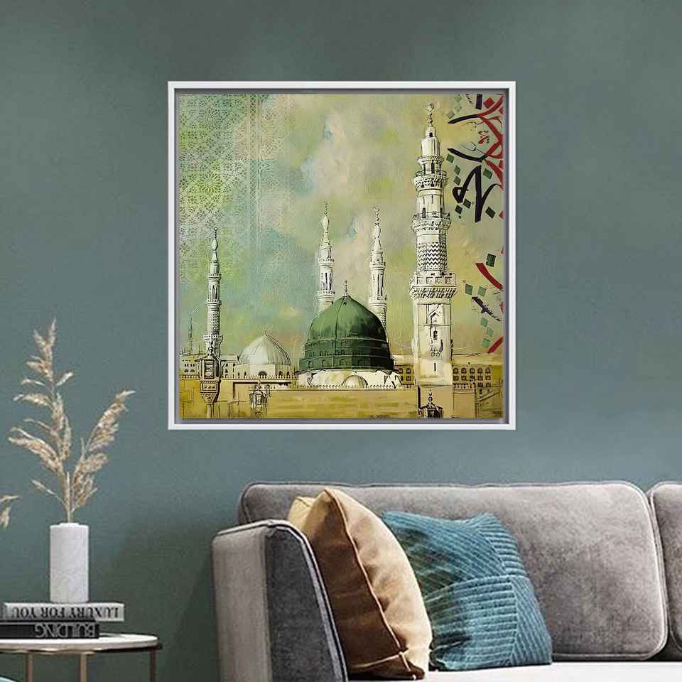 Printed Canvas: Prophet's Mosque Artwork for Elegant Decor,White Framed