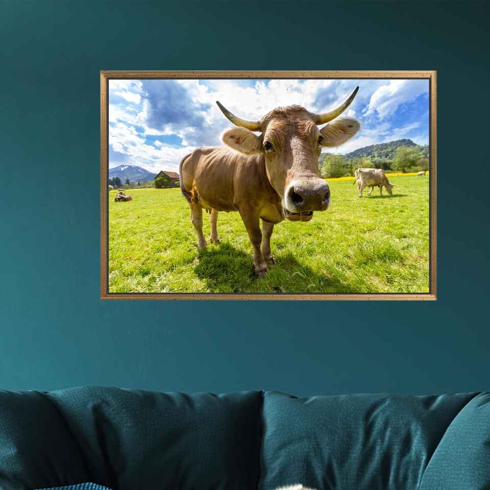 Printed Canvas: Rustic Cattle Head Farmhouse Art for Home Decor,1P:Gold Framed