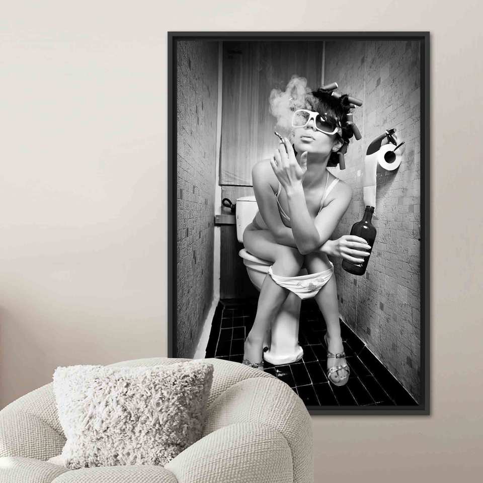 Printed Canvas: Sensual Smoking Woman Nude Art for Bedroom Decor,Black Framed