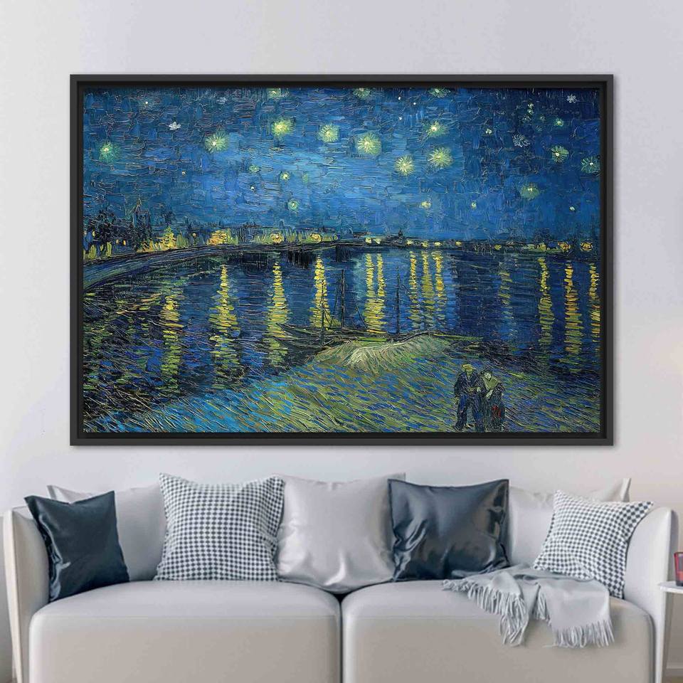 Printed Canvas: Starry Night Over The Rhone, Van Gogh Art,1P:Black Framed