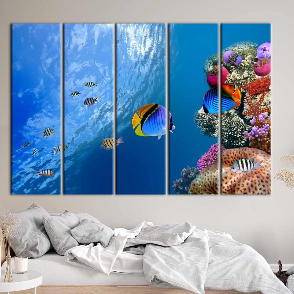 Printed Canvas: Tropical Fish Wall Decor, Underwater Fish Art, Seascape,5P:Gallery Wrapped