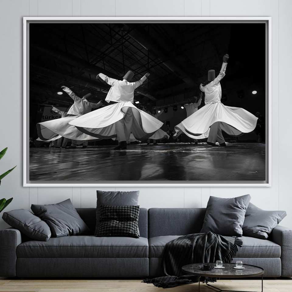 Printed Canvas: Whirling Dervish Dance, Islamic Art, Ramadan Eid Decor,1P:White Framed