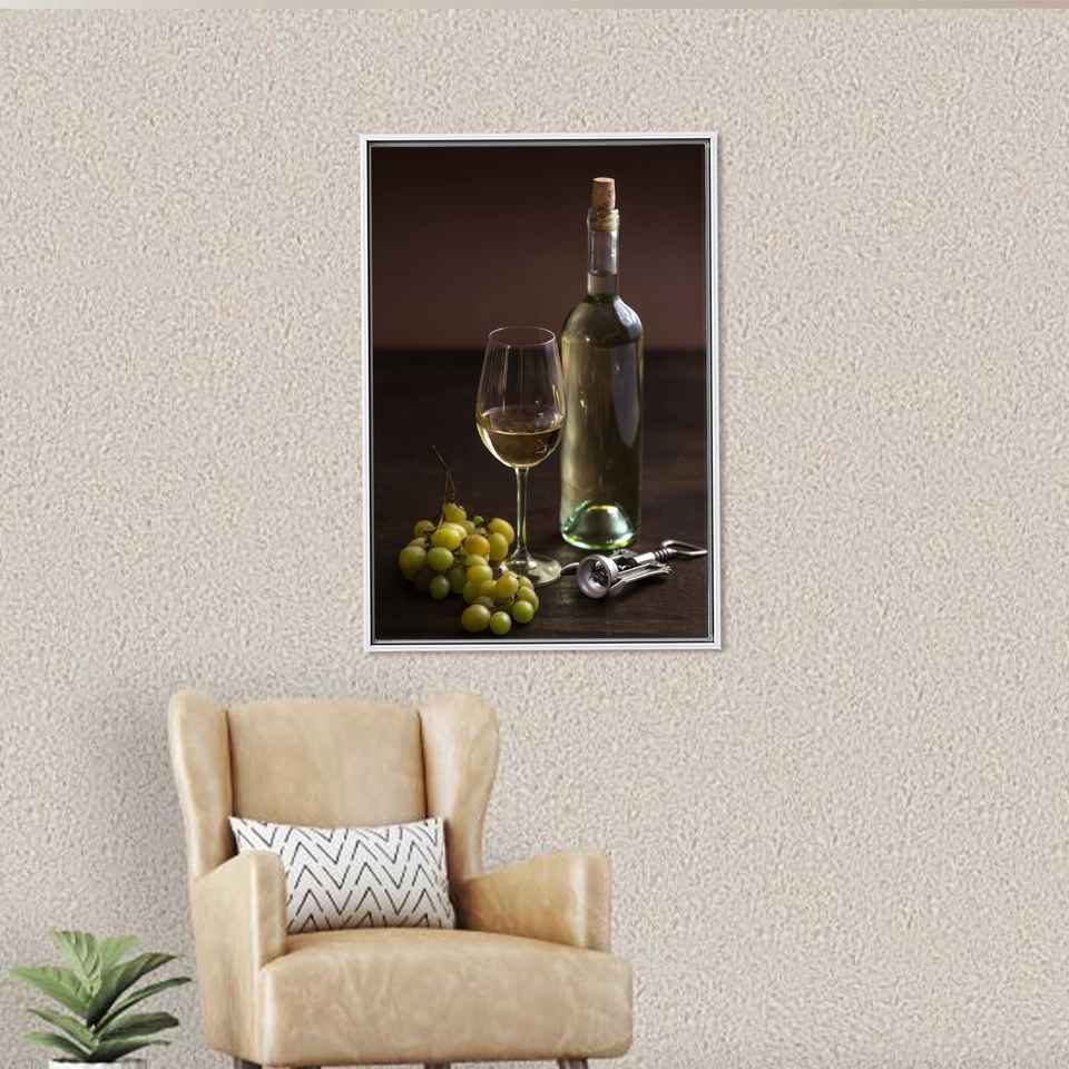 Printed Canvas: Wine And Grapes On The Table Artwork,White Framed