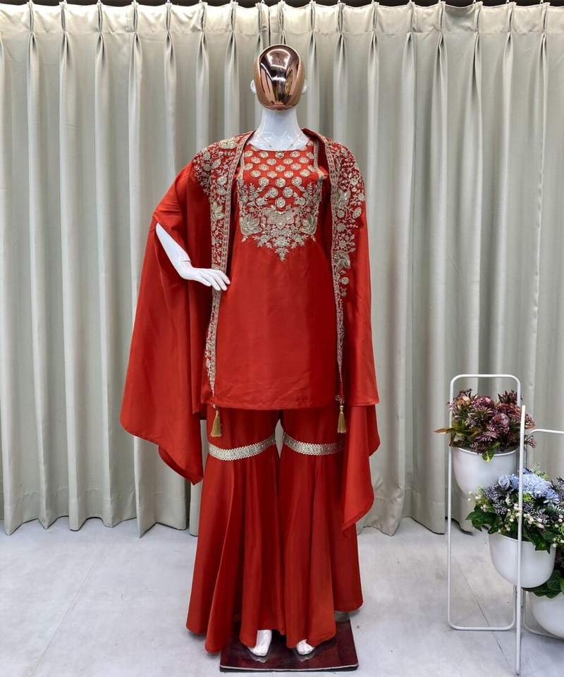 Printed Chinon Top with Heavy Sequence Sharara and Dupatta Ethnic Party Wear Set at Low Price, Most Picked Style