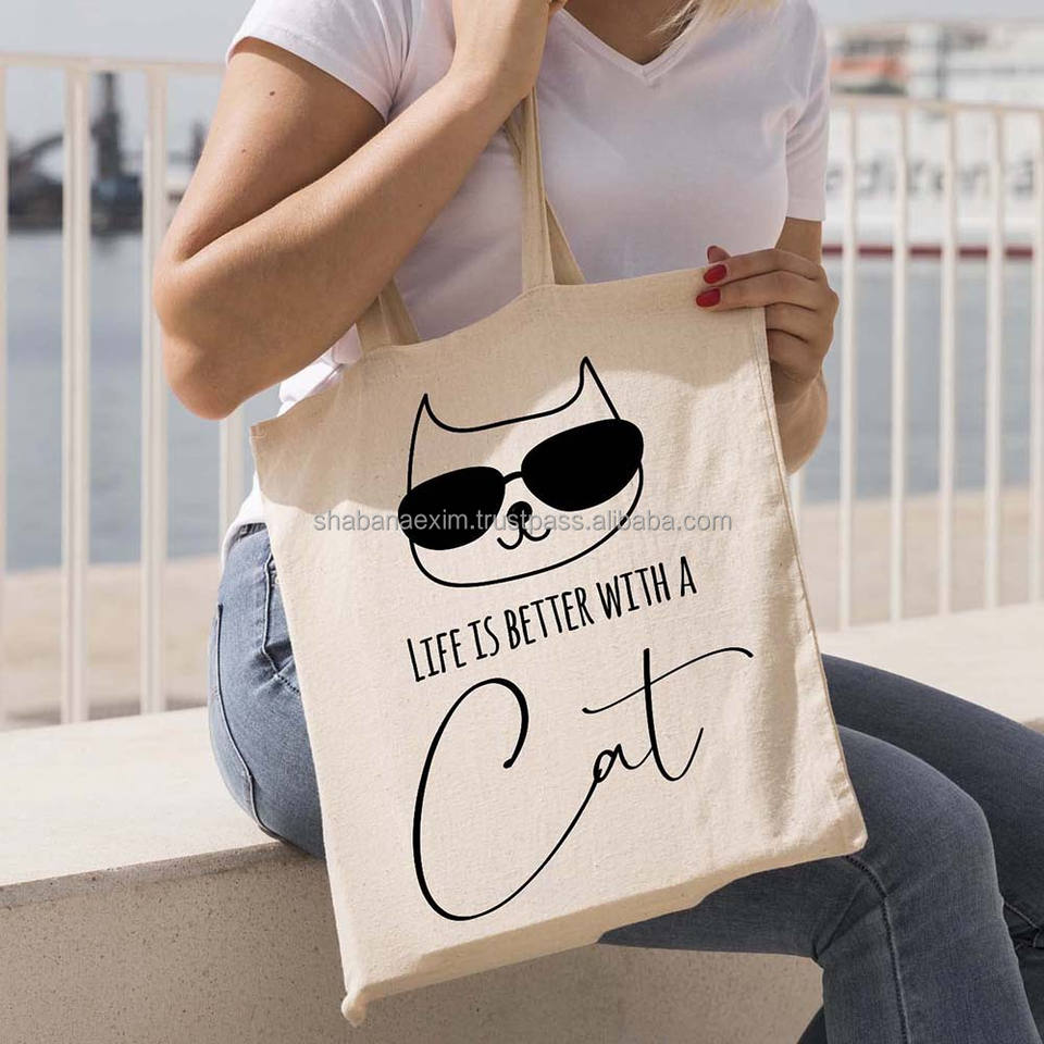 Printed Cloth Reusable Canvas Tote Bag Grocery Cotton Shopping Bags Custom Logo Size Stackable Storage Clothes Bag