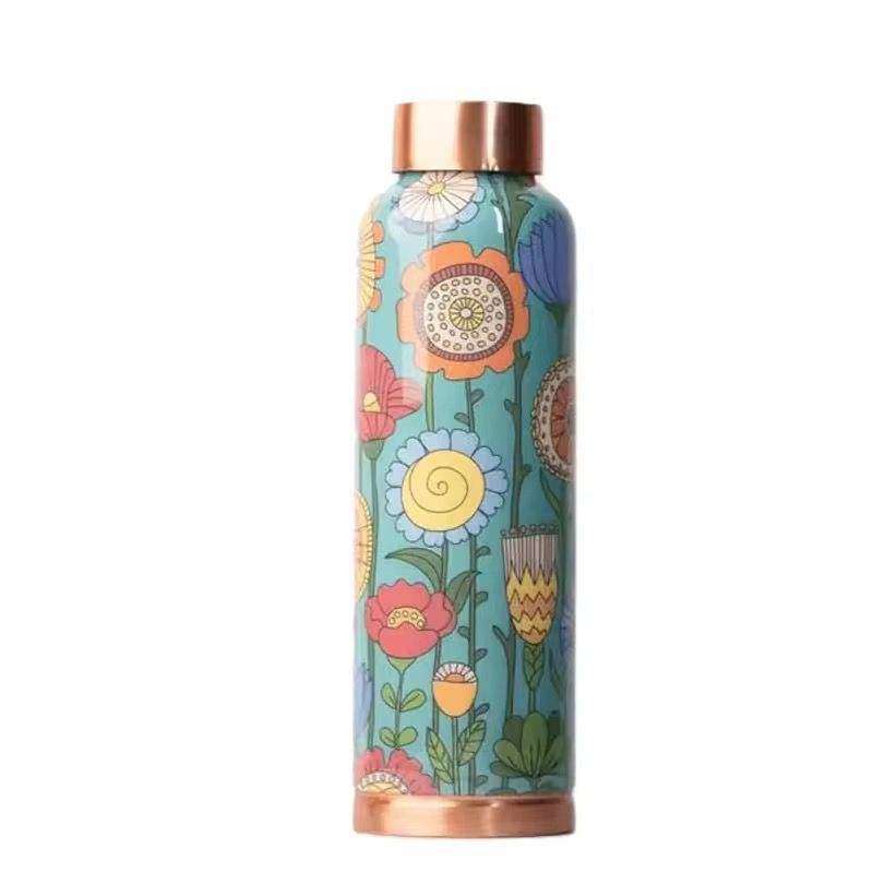 Printed Copper Water Bottle Sports Not Applicable for Boiling Water With Carrying Handle Copper Water Bottle