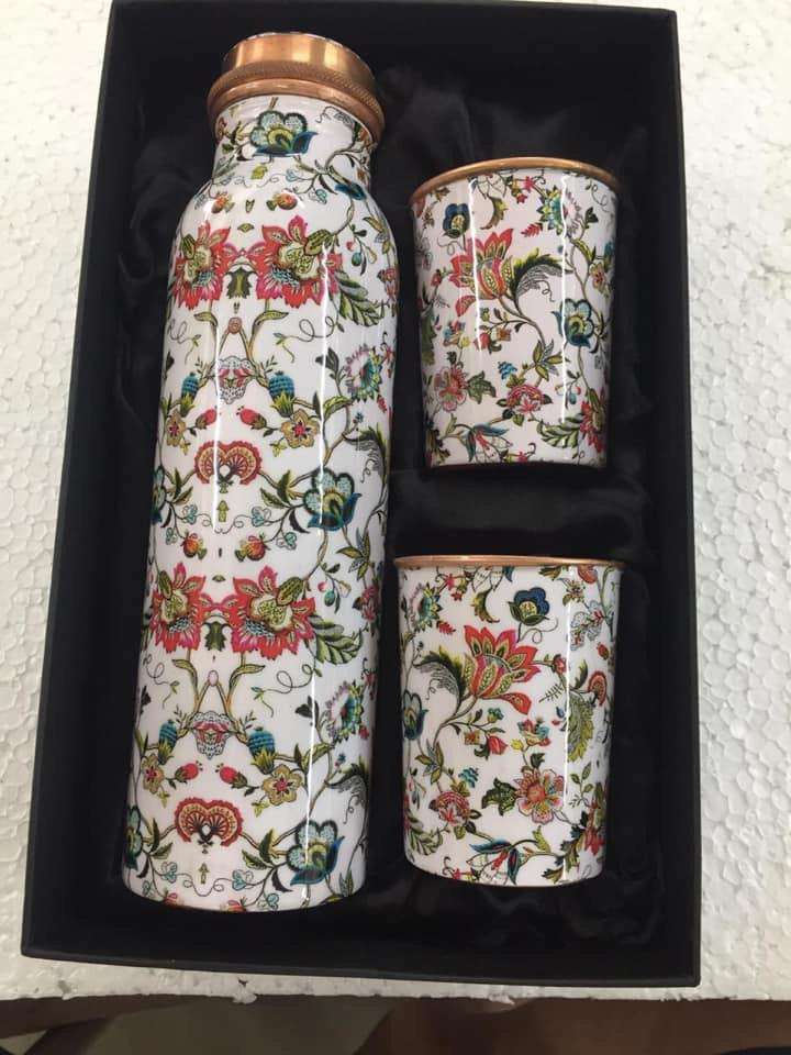 Wholesale Hammered Design Copper Printed Glass Drinkware Set Gym & Ayurveda Benefits Water Bottle for Active Lifestyle