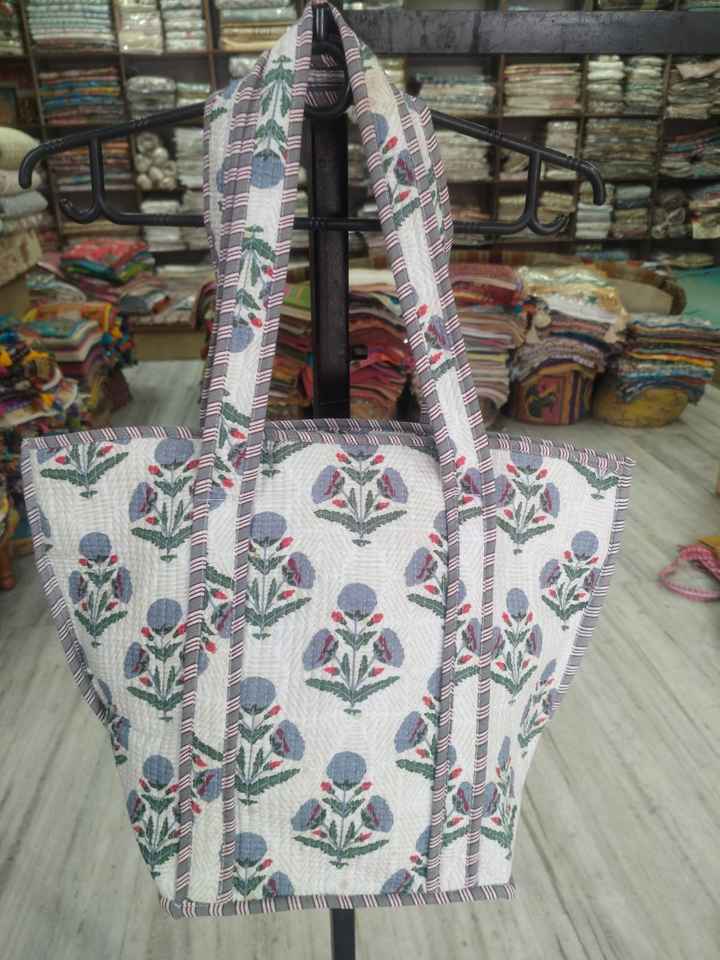 Printed Cotton Quilted Tokri Tote Bag Red Floral Block Print Handmade Carry Bag Wholesale Export Bulk B2B Supply