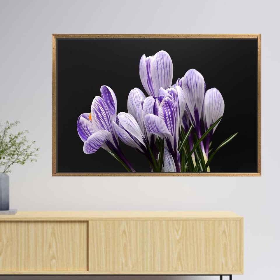 Printed Crocus Canvas Decor: Elegant Purple Flower Floral Wall Art,1P:Gold Framed