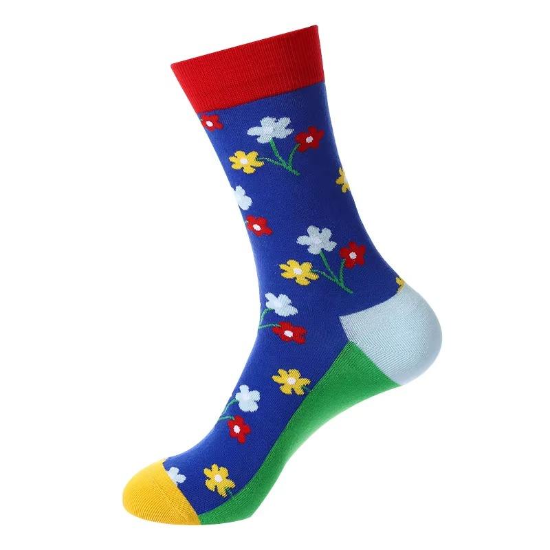 Printed Custom logo Socks For Men 100% Cotton High Quality Breathable Soft and Warmth Trendy Stretchable Mid Length Men Socks