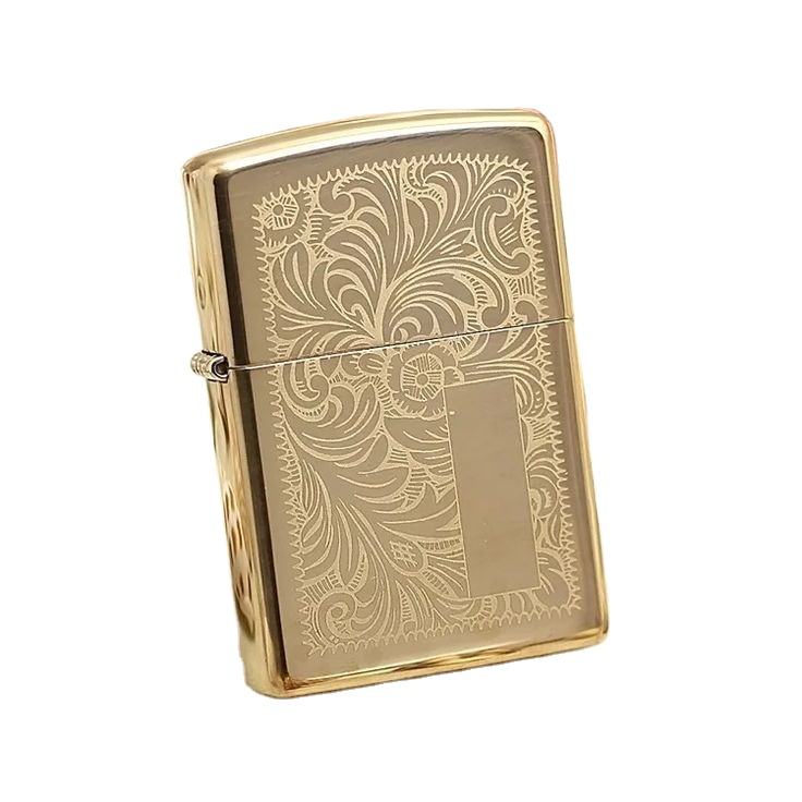 Printed Customized Logo Brass Flip Top Lighter Refillable Metal Pocket Lighter Minimal Design Smoking Accessory Wholesale