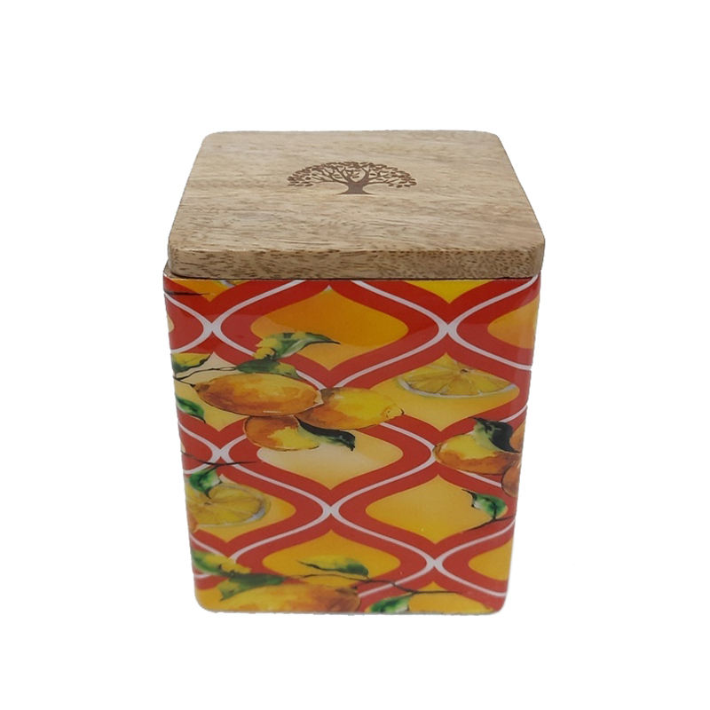 Printed Design Wooden Round Shape Storage Box With Lid Natural Finished for Kitchenware Tabletop Food Storage Box