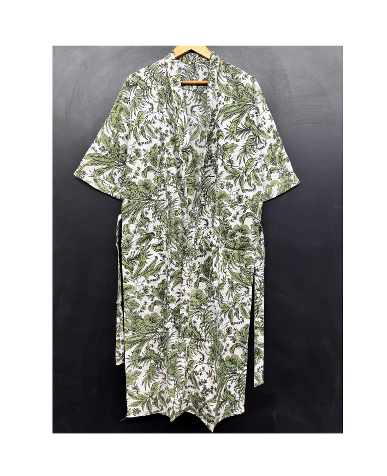 Printed Floral Floor-Length Women's Nightwear Handmade 100% Cotton V-neck Short Sleeve Oversized Fit Kimono Robe Bridal Comfort
