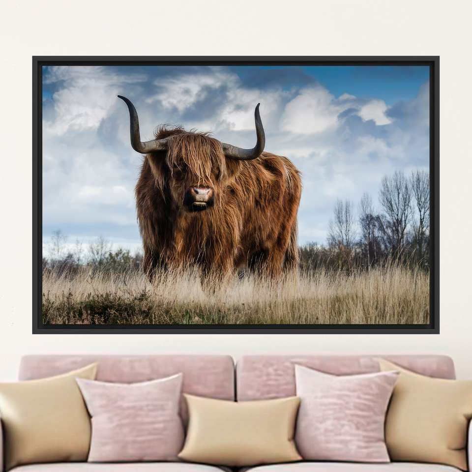 Printed Highland Cow Canvas Art: Elegant Scottish Decor,1P:Black Framed