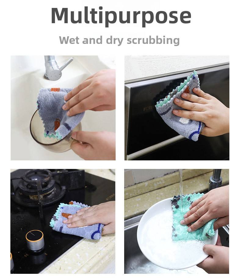 Printed Kitchen Cloth Coral Velvet Dish Towels Washable Dish Cloths Soft Tea Towels Dry Rags Microfiber Cleaning Cloth