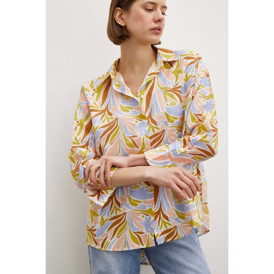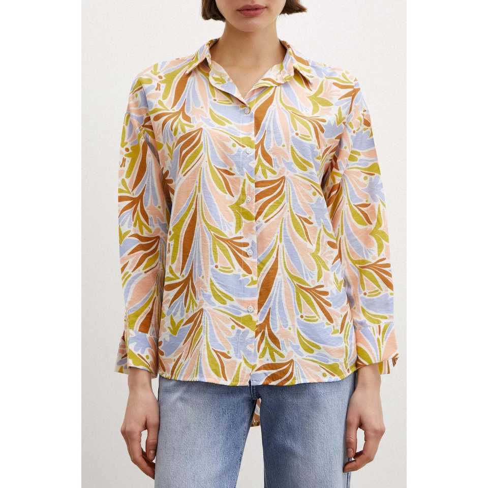 Printed Modal Shirt Women's Casual Floral Button Down Blouse Powder Pink Poplin Fabric Everyday Wear