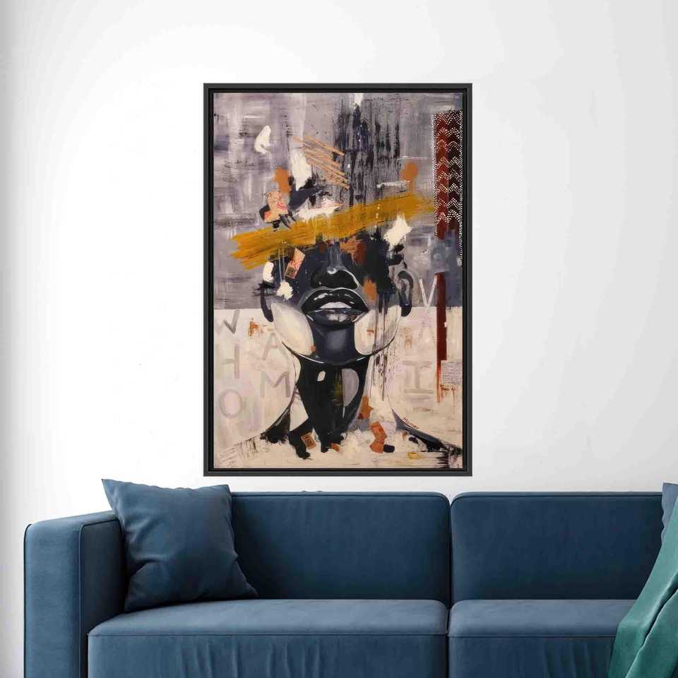 Printed Modern Woman Face Painting Canvas Art, Abstract Wall Decor,Black Framed