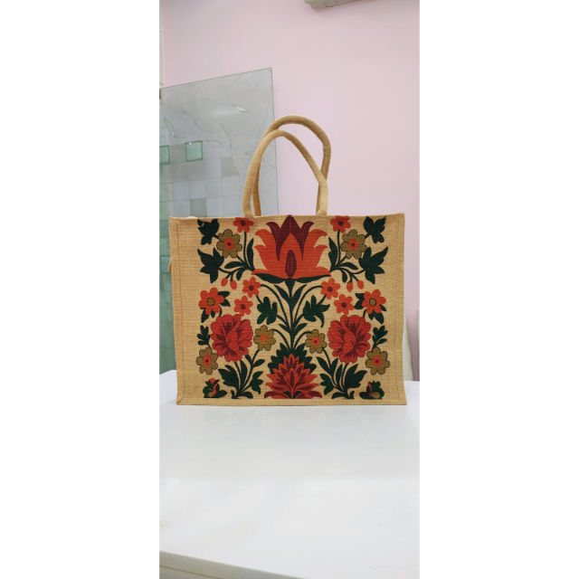 Printed Rectangle Jute Tote Bag-Eco-Friendly Hand-Style Print with Eco-Friendly Colors Durable for Diwali & Retirement Gifts