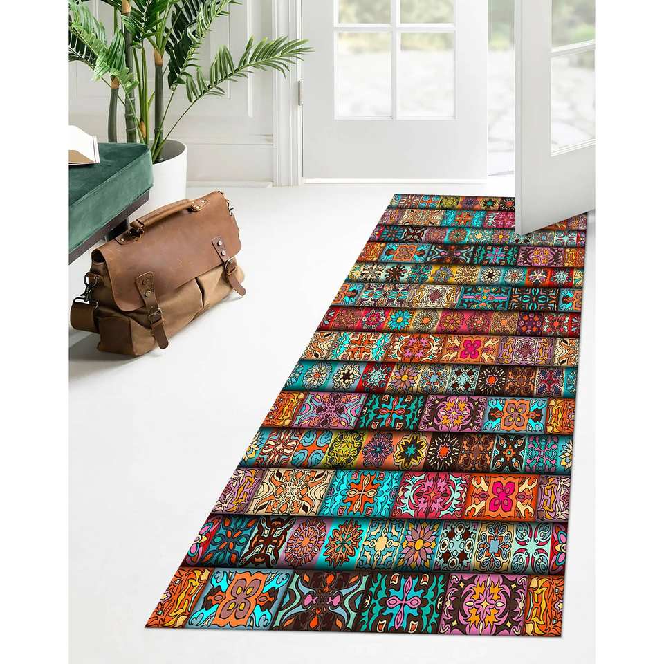 Printed Rug: Moroccan Ethnic Colorful Modern Bathroom Cool Step Front Door Custom,Nonwoven Thin Rug