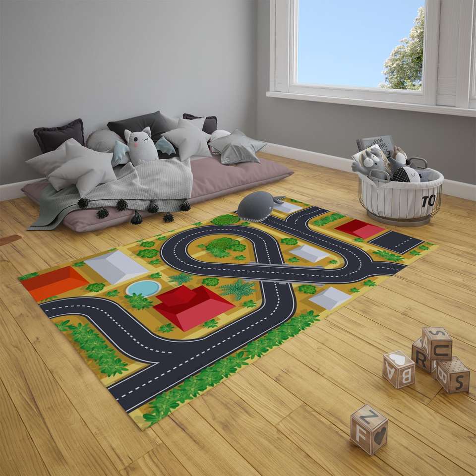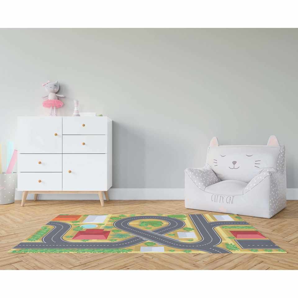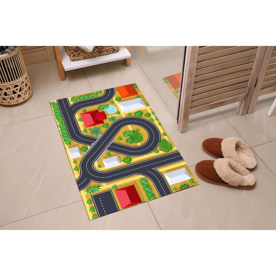 Printed Rug: Road Map Play Mat: Kids Activity Rug for Playroom or Nursery,Chenille Rug