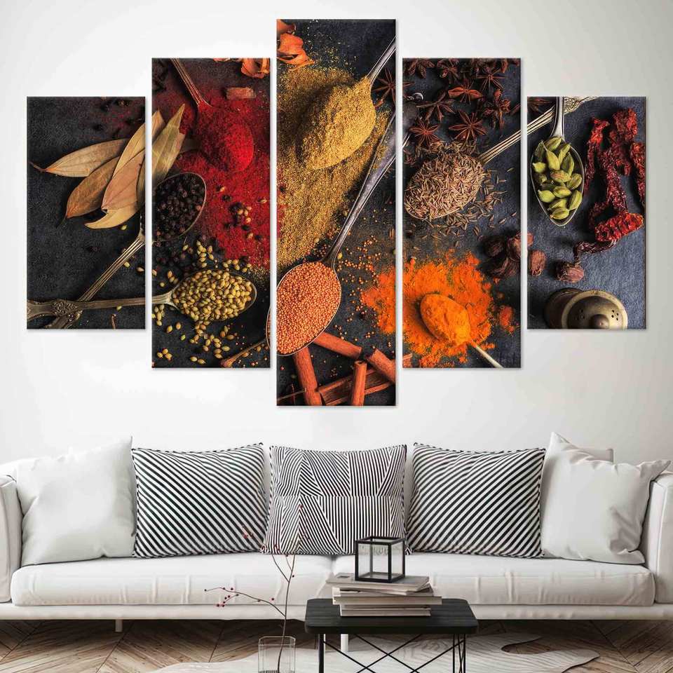 Printed Spices Canvas Artwork: Modern Colorful Kitchen Wall Decor,5P Mix-Gallery Wrap