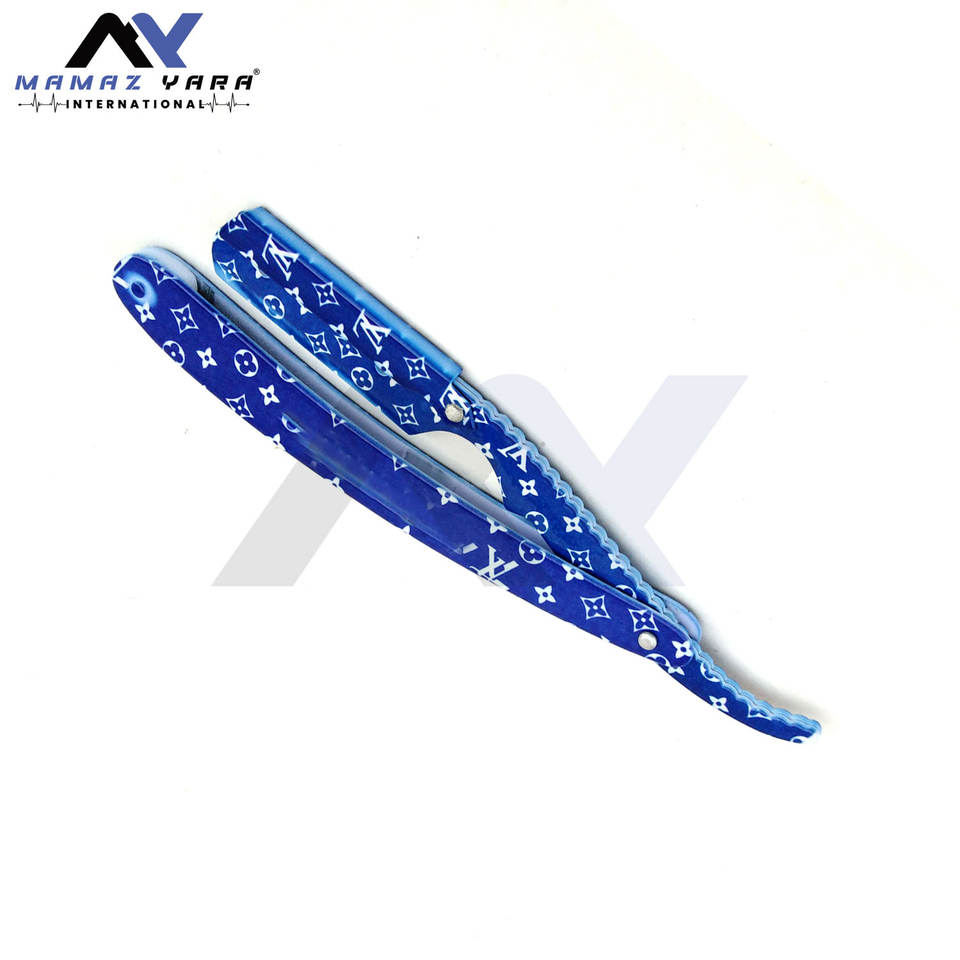 Printed Straight Razor Cut Throat Men Old School Barber Shaving Razor with Paper-Coated Handle Classic Wet Shave Grooming Tool