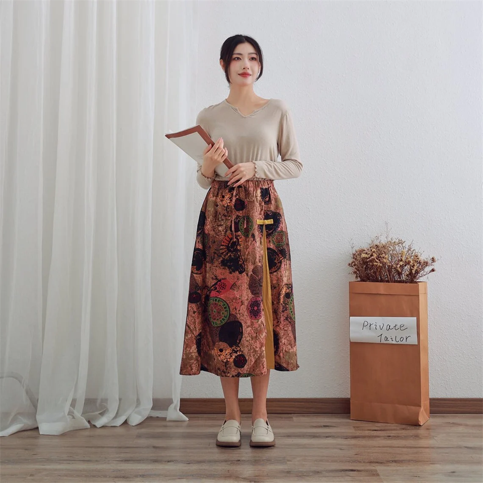 Printed Summer Cotton Skirt Casual Loose A-line Pleated Elastic Waist Flared Mini Skirts