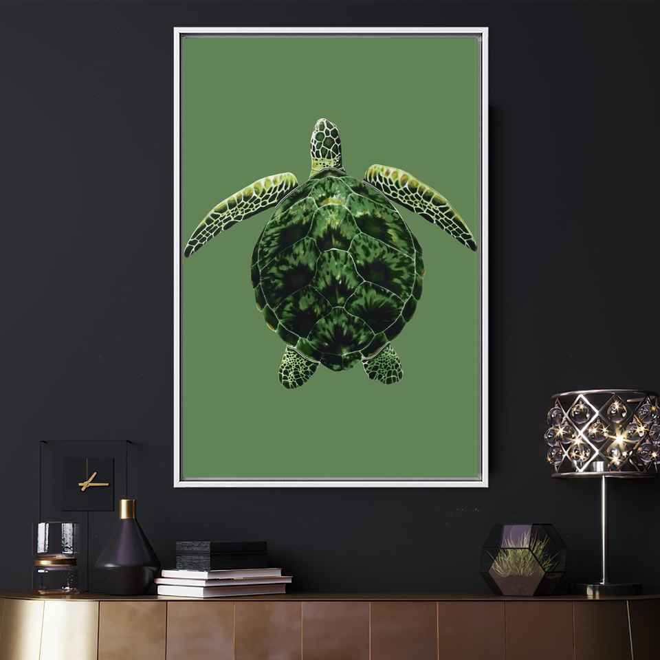 Printed Turtle Lover Canvas - Modern Animal Wall Art Decor,White Framed